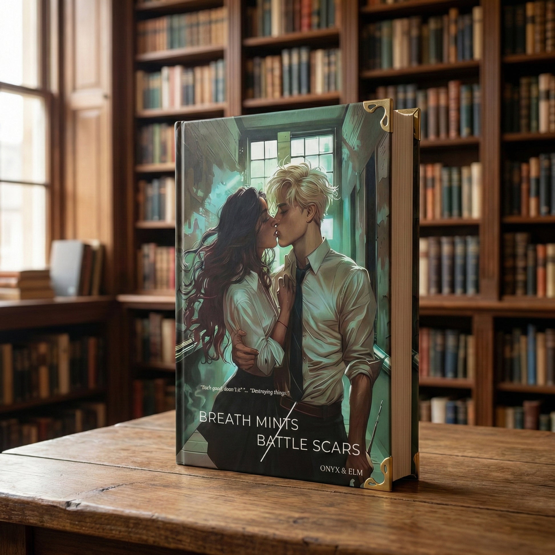 Breath Mints / Battle Scars illustrated hardcover book with fantasy cover art. A handcrafted Dramione fanfiction collectorโs edition, perfect as a gift.